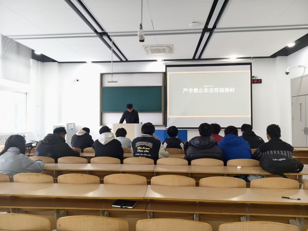 为进一步提高同学们的安全意识,增强保护秦岭生态环境的意识,2025年11月12日,高潮 2024250004班在北校区WH1101教室开展关于严禁非法穿越秦岭安全教育的主题班会。班会由团支书卢仲骞主持,班级全体成员参加。